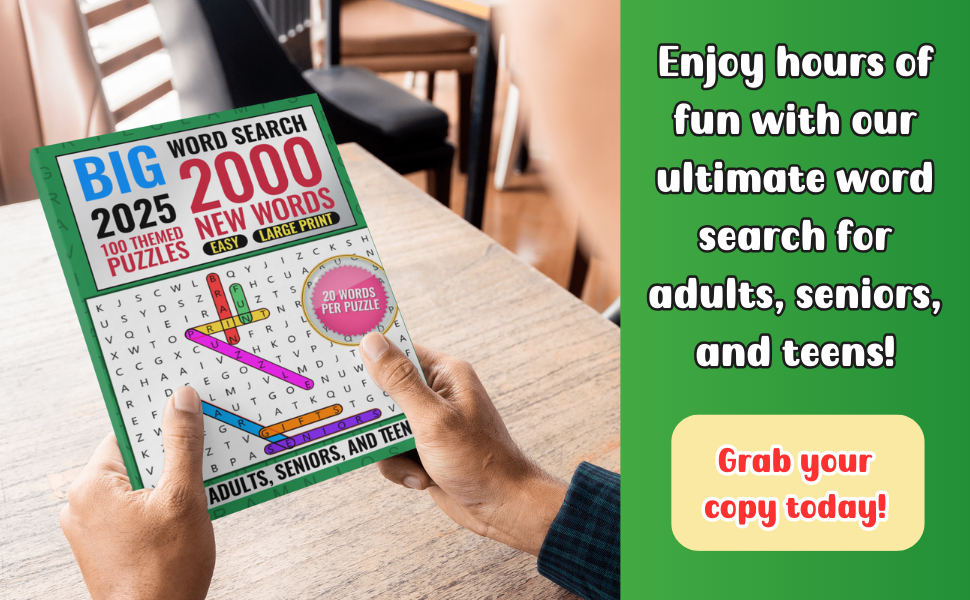 Don’t wait—grab your copy of the Big Word Search Puzzle Book 2025 today! Start your word search journey and unlock hours of fun and relaxation!